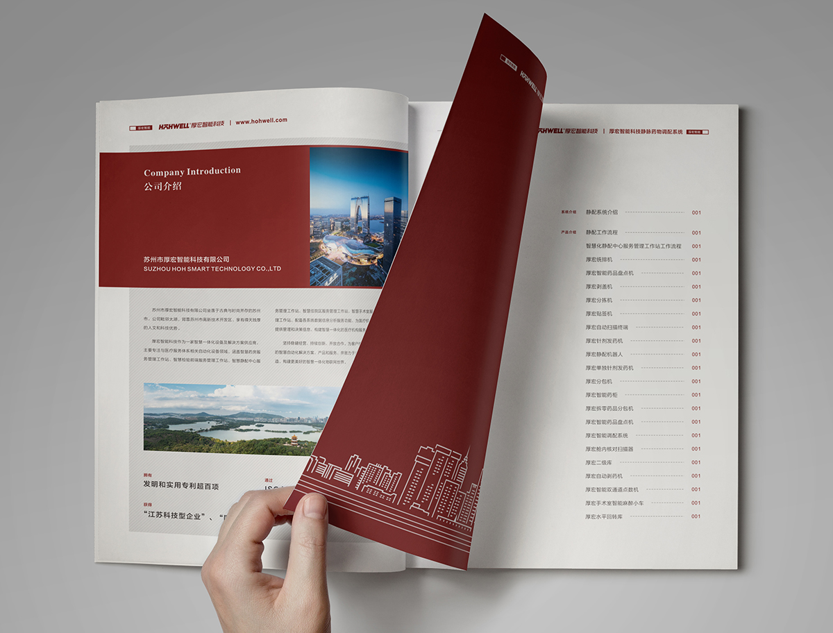 厚宏智能科門診藥房系統宣傳畫冊設計,厚宏智能坐落于古典與時尚并存的蘇州,是一家智慧一體設備及解決方案的供應商,主要專注醫療服務體系相關自動化的設備領域,涵蓋智慧藥房服務管理站,智慧前段服務管理站,智慧靜脈配送中心等項目,構建一體化的醫療機構服務體系。