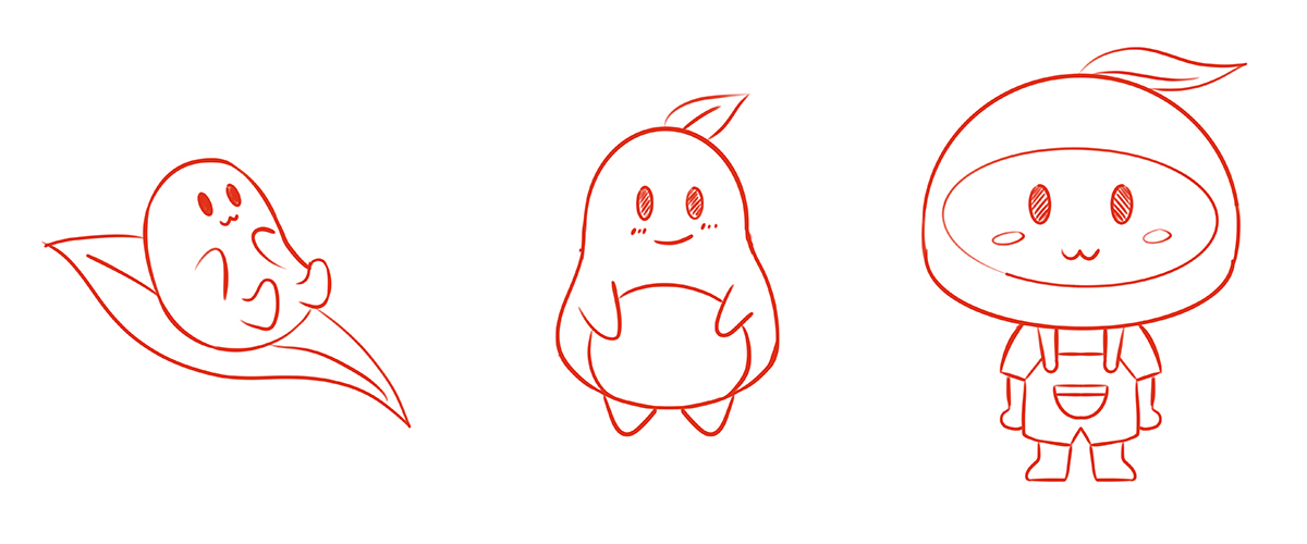 根據小能豆品牌IP設計的行業特點,我們為小能豆畫了卡通人物設計草圖,客戶選擇了第二個和第三個草圖深化設計