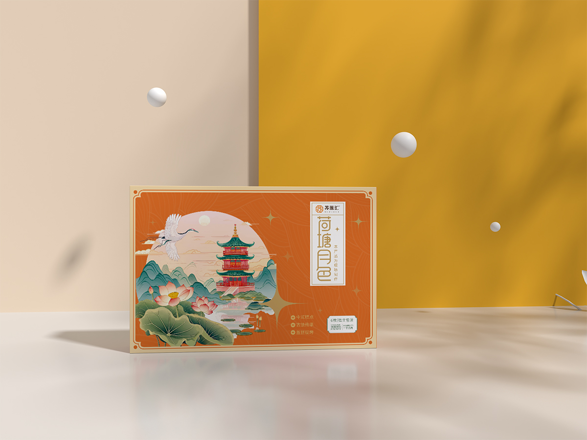 荷塘月色荷花酥包裝系列,傳統(tǒng)技藝 層層起酥 手工制作 回歸本真 酥皮融入健康果蔬粉調(diào)制 0天添加人工色素 遵守自然堅(jiān)守原本 冰粉花色 清甜酥脆口感豐富。主體圍繞荷花 仙鶴以及蘇州園林景色進(jìn)行創(chuàng)造。