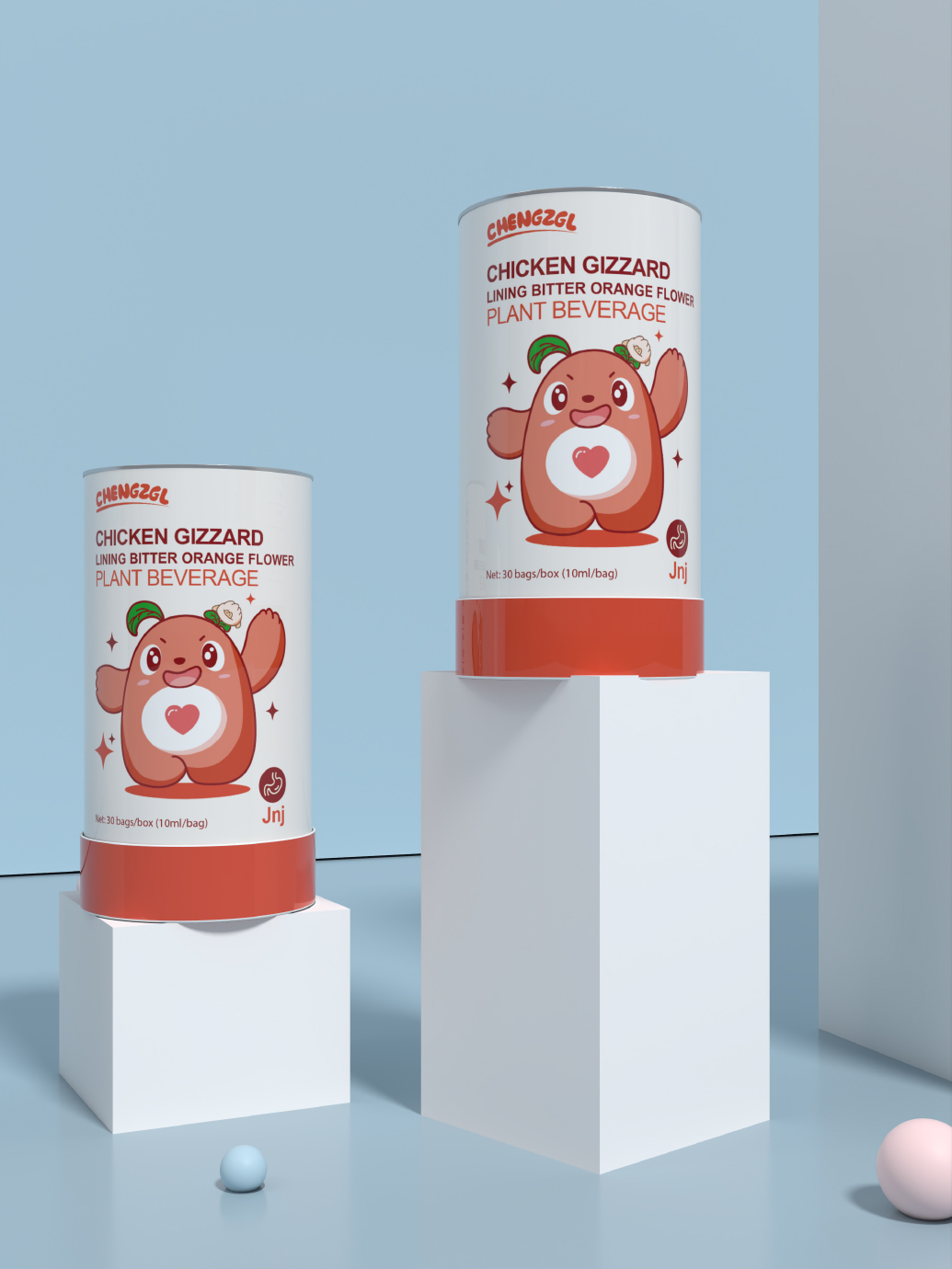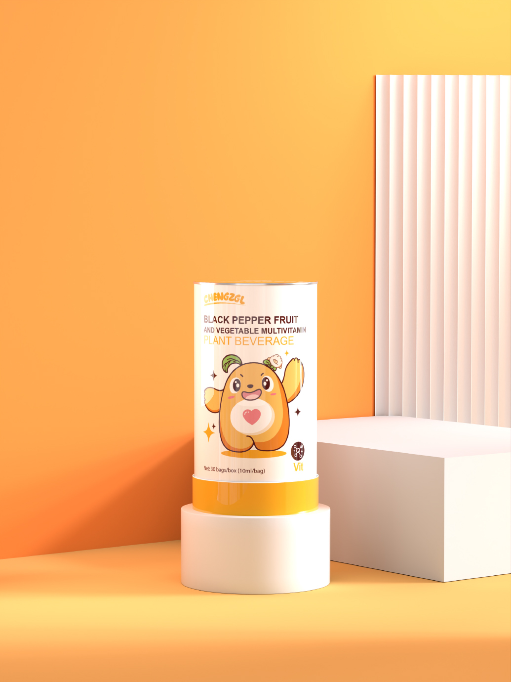 兒童營養素橙長攻略包裝設計本以“綠色環保,傳遞愛心”為主題,旨在通過可愛的卡通形象向兒童傳遞環保意識和愛心精神。主體形象是一只可愛的熊以綠色為主色調,身體上帶有愛心圖案,代表著對環境的關愛和保護。采用可愛的卡通形象,吸引兒童的注意力,讓他們更容易接受和理解環保理念。設計簡潔明了,避免過多的細節和裝飾,讓兒童能夠輕松地識別和記憶。在設計中融入一些創意元素,如將小熊的頭頂設計帶有趣味小表情的裝飾,增加趣味性和互動性。