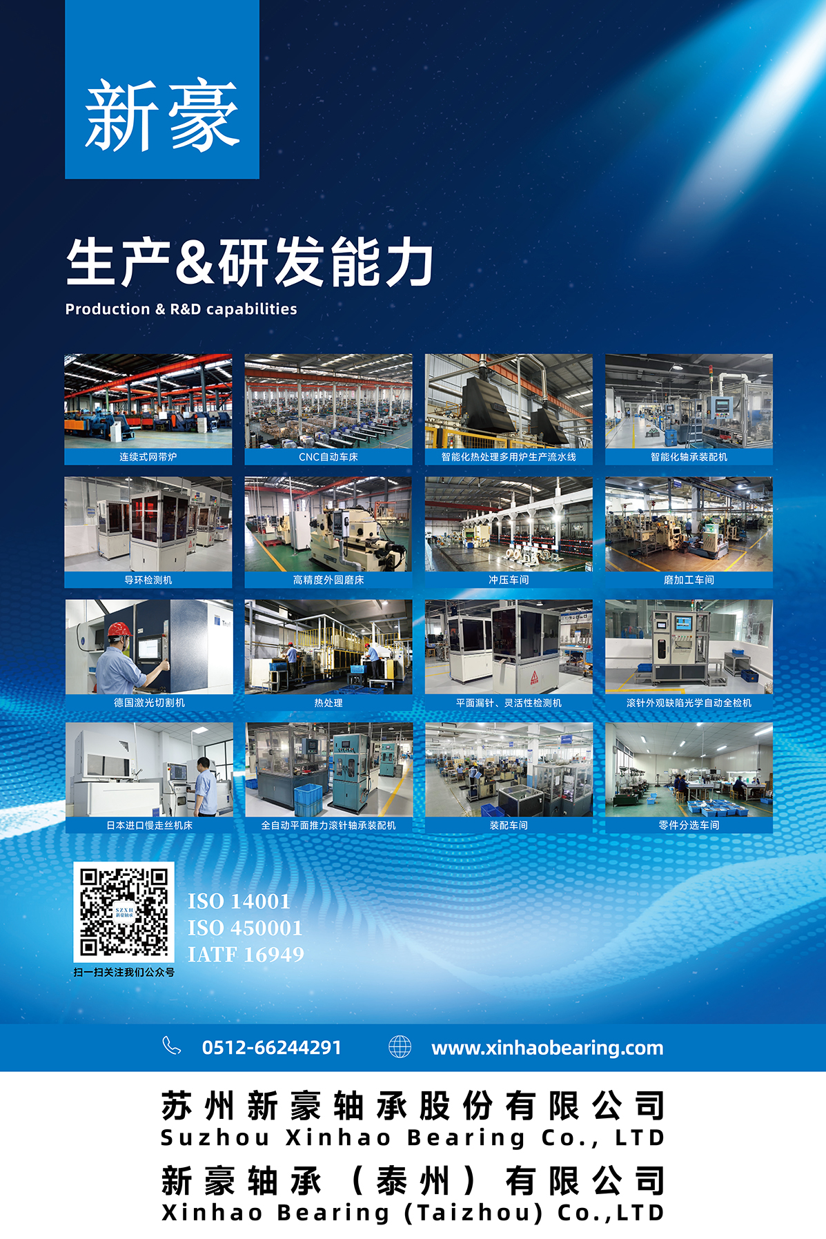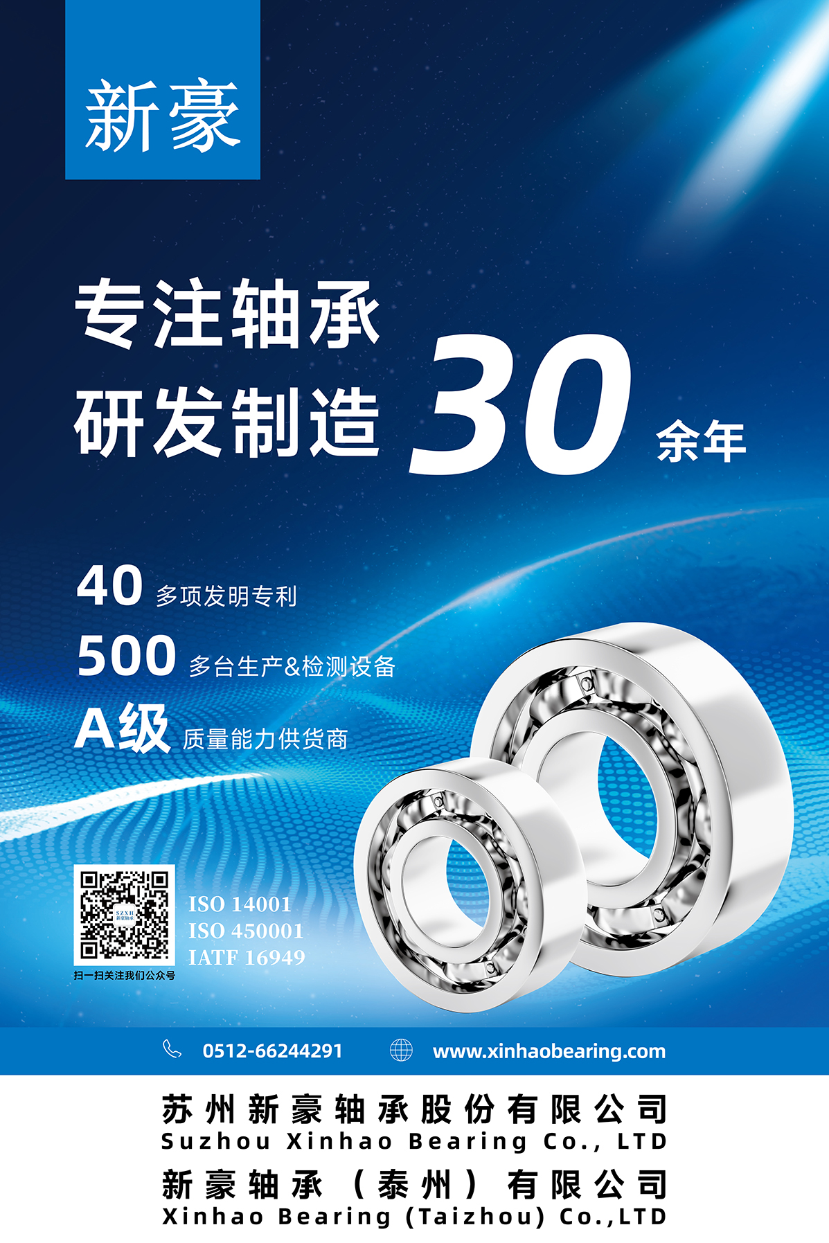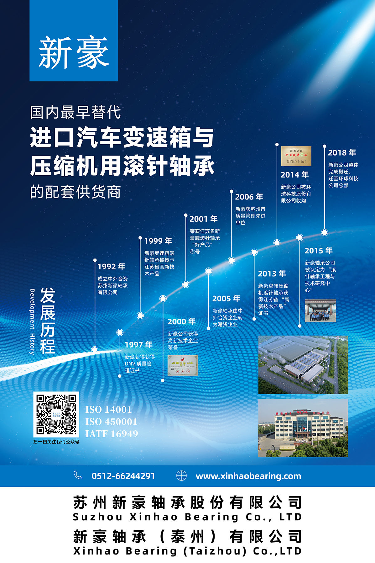 蘇州新豪軸承股份有限公司于1992年成立,位于蘇州市吳中區(qū)胥口鎮(zhèn)石中路188號,是蘇州環(huán)球科技股份有限公司的全資子公司,是江蘇省技術廳認定的高新技術企業(yè),先后獲得“江蘇省橋車變速箱滾針軸承高新技術產品”與“與江蘇省汽車空調壓縮機滾針軸承高新技術產品”的認定。擁有各項專利30多項,公司現(xiàn)有員工110多人,廠房建筑面積18萬平方米,95%以上為OEM客戶。新豪2023年擁有10多長展會,極地視覺簽訂包年框架協(xié)議,為新豪展會海報設計,logo設計,宣傳畫冊設計,展覽展廳設計裝修,提供全方位的品牌設計服務。