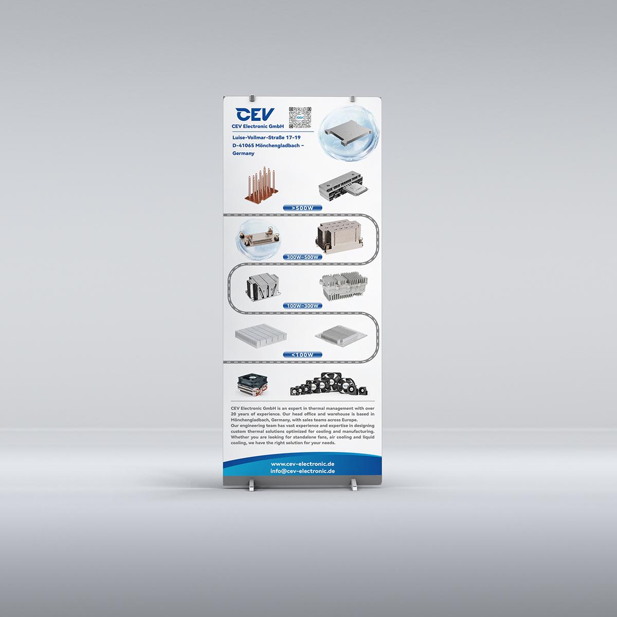 此次參加的是國外展會物料設計,所以無論做海報、宣傳冊、易拉寶設計要考慮到簡潔 大氣、考慮的產品以白色為主,為更好突出產品,主色調采用科技藍,把好的創意和設計技巧。通過合理的布局、精準的信息傳遞和吸引人的視覺效果,海報設計能夠有效地吸引觀眾的眼球。 抓住眼球的設計才是好設計。