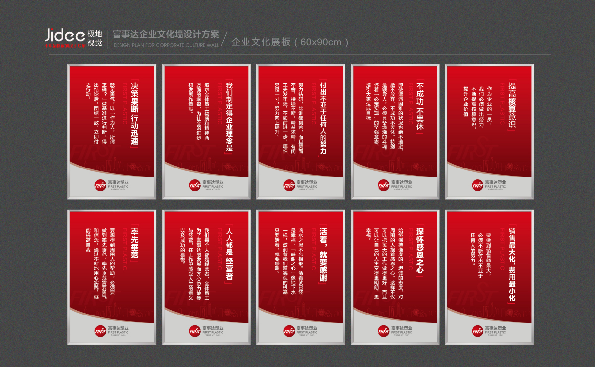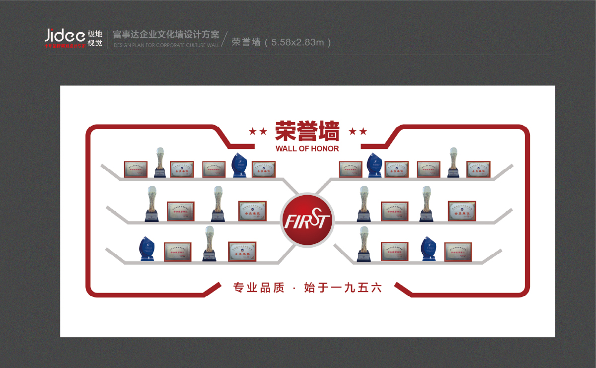 極地視覺與富事達合作提供文化墻設計制作服務,整體設計風格和企業調性保持一致,文化墻的設計以灰色和紅色為主來設計,蘇州企業文化墻制作包括LOGO墻制作、標志墻制作和文化標語宣傳,文化墻是文化精髓、員工精神風貌、團隊精神風采、奉獻社會精神等元素于一體的文化展示窗口。