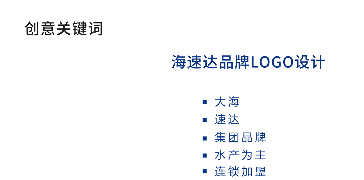 品牌創意關鍵詞: ◆大海 ◆速達 ◆水產為主 ◆集團品牌 ◆連鎖加盟