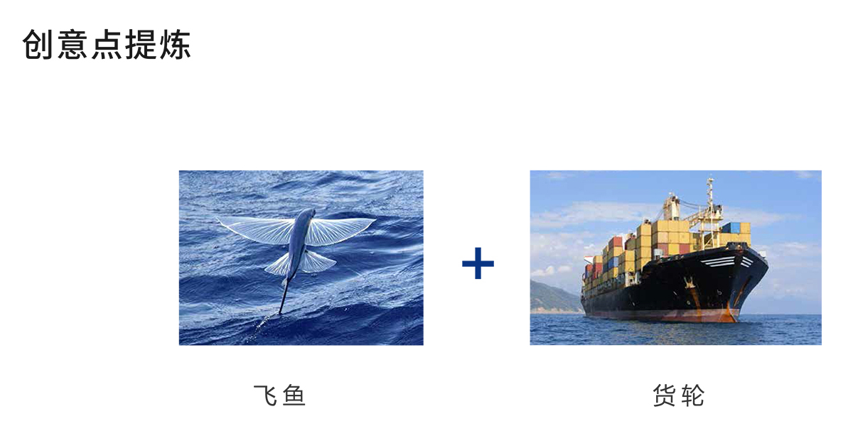 飛躍海面的飛魚,濺出的水花構成前進,行駛的貨輪。