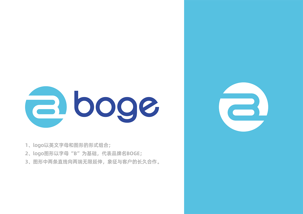 品牌介紹 :智能科技領(lǐng)域內(nèi)的技術(shù)咨詢、技術(shù)服務(wù)、技術(shù)開(kāi)發(fā)、技術(shù)轉(zhuǎn)讓;自動(dòng)化設(shè)備及零配件,整體是以英文字體+圖形的方式進(jìn)行的logo設(shè)計(jì),LOGO是以B為基礎(chǔ)進(jìn)行的延展設(shè)計(jì),是BOGE的首字母,圖形中2條線無(wú)線延伸,寓意和客戶保持長(zhǎng)久的合作,整體風(fēng)格簡(jiǎn)潔、科技感是具有國(guó)際范logo設(shè)計(jì)。