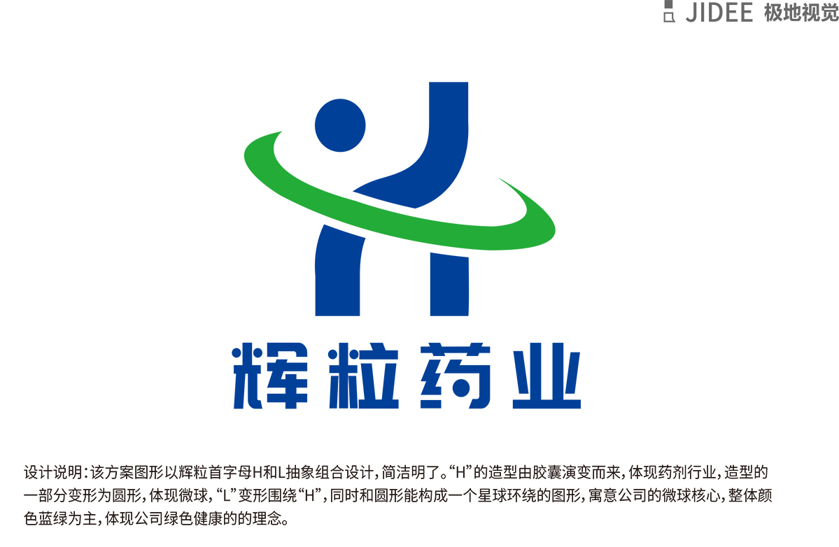 輝粒藥業(yè)logo 設(shè)計(jì)方案以輝粒首字母H和L抽象組合設(shè)計(jì),簡(jiǎn)潔名了,H 的造型由膠囊演變而成,體現(xiàn)藥劑行業(yè),造型的的一部分變形為圓形,體現(xiàn)微球,L變形圍繞H,同時(shí)和圓形能構(gòu)成一個(gè)星球環(huán)繞的圖形,寓意公司的微球核心,整體顏色以藍(lán)綠為主,體現(xiàn)公司綠色健康的理念。