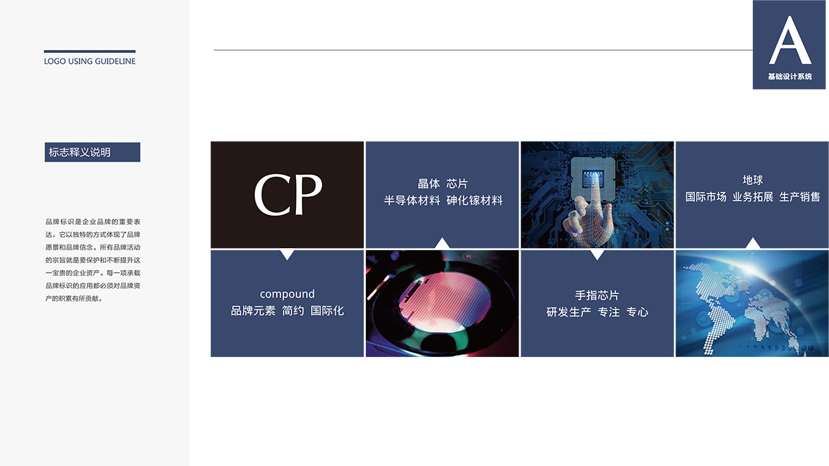 品牌介紹 :浙江康鵬半導體有限公司成立于2018年11月,注冊資金5666.42萬元,注冊地址位于蘭溪光膜小鎮。公司專注于半導體材料的研發、生產及銷售,主營產品為砷化鎵晶片,在LED發光器件、無線通訊用射頻器件及激光器制備等領域有著廣泛的應用。公司一期占地面積34.19畝,總建筑面積3.2萬平方米,可實現年產砷化鎵晶片300萬片,極地視覺為康鵬半導體提供品牌設計規范,從logo設計,VI設計,企業廠房外觀廣告墻、企業內部文化墻及相關導視牌等品牌設計服務。