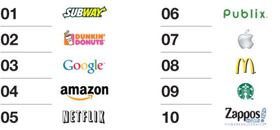 在出色的設(shè)計(jì)和品牌推廣中,我們總是頻繁地說到“簡單”,這個(gè)詞都快成為我們的口頭禪了。思睿高全球品牌簡單指數(shù)(Siegel+Gale Global Brand Simplicity Index)調(diào)查了6000多個(gè)消費(fèi)者心目中最簡單的品牌(包括廣告內(nèi)容的簡潔性、網(wǎng)站的可用性以及產(chǎn)品的真實(shí)體驗(yàn)),并試圖給“簡單”下個(gè)定義。他們最后發(fā)布的調(diào)查報(bào)告闡述了“簡單”在不同行業(yè)中的價(jià)值,發(fā)人深省。 讓我們從美國最簡單的十個(gè)品牌說起: