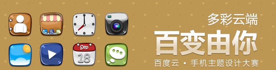 多彩云端、百變由你——首屆百度云・手機(jī)主題設(shè)計(jì)大賽開(kāi)始啦!本次大賽旨在給優(yōu)秀的設(shè)計(jì)者們提供一個(gè)施展才華的舞臺(tái),同時(shí),為百度云ROM的眾多用戶帶來(lái)更豐富、更多彩、更具創(chuàng)意的手機(jī)桌面主題。