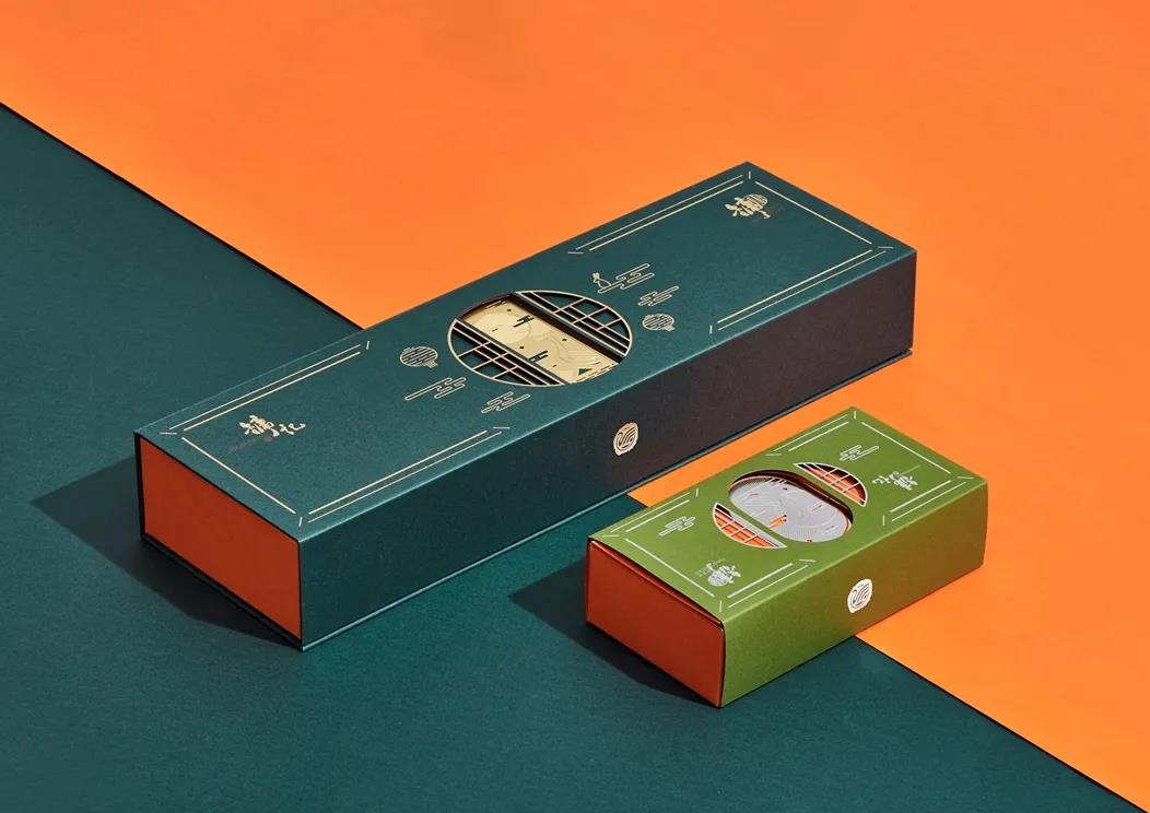 通過(guò)融合傳統(tǒng)與創(chuàng)新,新的和舊的,包裝創(chuàng)造了一個(gè)簡(jiǎn)單而現(xiàn)代的方法,只在一個(gè)單一的彩盒上加入了金箔的中秋圖案,重新詮釋了傳統(tǒng)元素,如燈籠和中國(guó)傳統(tǒng)窗框。為了使它不僅僅是一個(gè)包裝,我們定制了銅書(shū)簽簽名鵝賞月作為包裝的一部分。