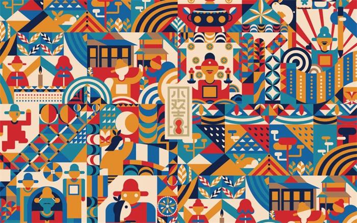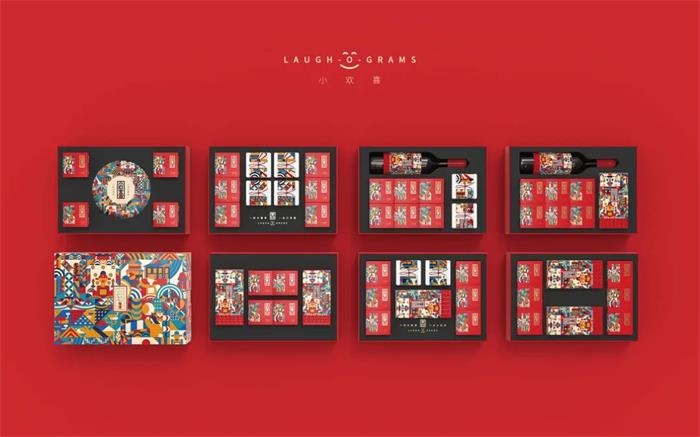 這款組合型茶葉禮盒套裝首先從產(chǎn)品使用情景推出文化再形成產(chǎn)品,并從產(chǎn)品本身出發(fā),以中國喜文化為基礎依據(jù)形成“小歡喜”概念,賦予產(chǎn)品包裝一定的主題意義,不同于以往的插畫設計。這款禮盒以簡單的幾何圖形拼接而成,錯落有序的排列方式搭配高飽和度的斑斕色彩,營造了一種同慶歡喜的氛圍。而拼接成的畫面,呈現(xiàn)出“小歡喜”的拼音首字母形式,并在字母中加入了金榜題名、洞房花燭夜等人生之“八喜”的經(jīng)典場景,扁平化的描繪手法反而增添畫面的立體感。內(nèi)盒的獨立茶葉包裝則要更顯簡約,紅色外盒搭配半邊插畫內(nèi)容,側標的“小歡喜”字樣經(jīng)過藝術化處理,既能有效展現(xiàn)產(chǎn)品信息,也很好地平衡了整體視覺效果。白色盒裝則以可拆卸標簽貼為主視覺,紅色繩結的固定及裝飾作用豐富了整體包裝層次,進一步增強與消費者間的情感連接。