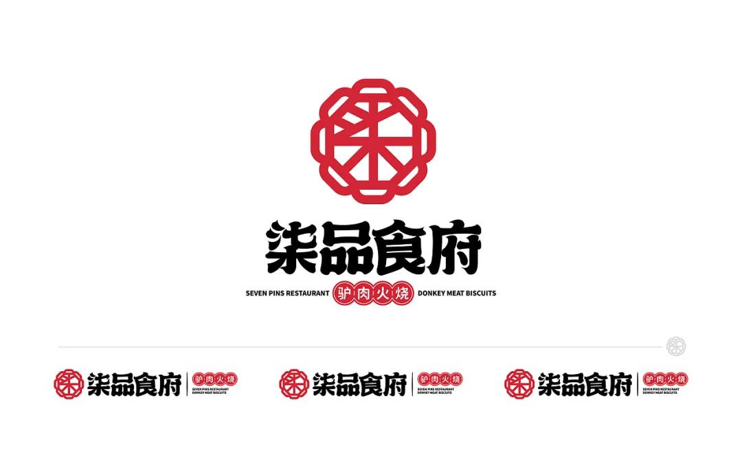 驢肉火燒是華北地區(qū)極為流行的傳統(tǒng)小吃,華北地區(qū)的大街小巷隨處可見驢肉火燒的店鋪,驢肉也蘊含著極高的營養(yǎng)價值。柒品食府的LOGO圖形提取了花窗的元素,結(jié)合名稱的首字“柒”抽象而成,是比較古典的感覺,注重打造品牌的符號文化。而文字的筆劃結(jié)束處的上揚或下鉤,令字形呈現(xiàn)出比較輕俏的感覺,圖形與文字,更像是傳統(tǒng)與現(xiàn)代的撞擊。LOGO有著不同的組合樣式,橫版組合樣式重在突出符號和名稱,而豎版組合樣式則側(cè)重展現(xiàn)名稱和品類,圖形符號作為點綴,使LOGO的整體呈現(xiàn)更加和諧。