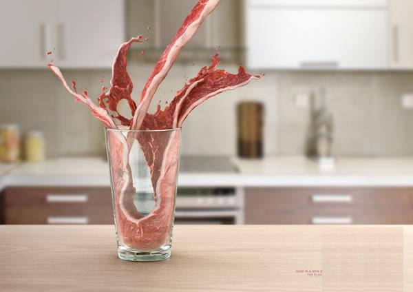 夏天快到了,很多人會選擇去便利超商買飲料解渴,但因為健康因素還有省錢,自己制作冰水的朋友也不在少數,但是冰箱只要稍微有異味,不管是冰水溫水冰塊,喝起來就是有點怪怪的冰箱味道,喝了不只沒有消暑的感覺,甚至還多了分惡心感。 在國外的Exito 瓶裝水,就利用了這種冰箱異味當做概念,設計出一系列驚悚的異味開水廣告海報,特別強調了他們家的瓶裝水總共有七層,不管你的冰箱異味有多濃都不會影響你喝水的品質!淺顯易懂的概念就完整了表達了該廣告所要表現的意象,加上有點超現實的手法,輕松就吸引了眾人的目光(至少編者被吸引了XD),用看的就感覺喝到生肉水的直接感受也令人印象深刻。
