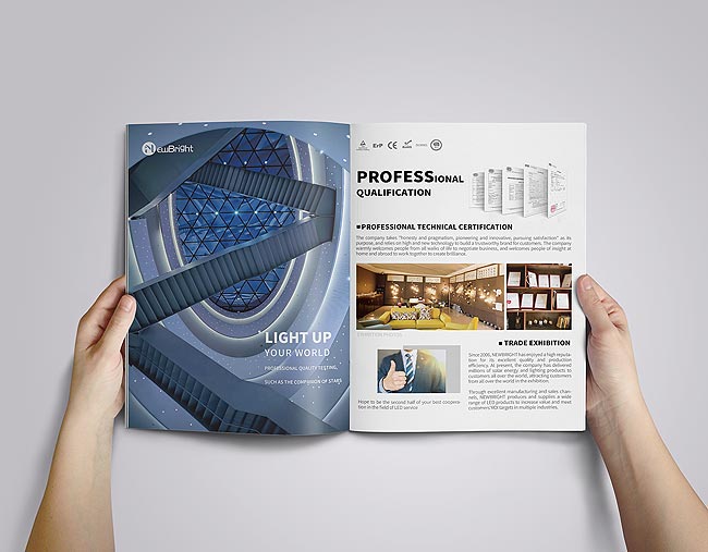照明產(chǎn)品直接在封面展示嗎?這種設(shè)計(jì)方法并非總是管用。企業(yè)進(jìn)入品牌塑造階段以后更多的是讓用戶記住你這個品牌,進(jìn)而逐步通過產(chǎn)品來積累信任度。因此封面上不必面面俱到羅列照明產(chǎn)品,后續(xù)內(nèi)文有足夠的空間給與設(shè)計(jì)師充分的發(fā)揮。照明產(chǎn)品宣傳冊封面以簡潔的風(fēng)格,讓LOGO優(yōu)先進(jìn)入用戶的視野,并且在色彩上進(jìn)一步統(tǒng)一協(xié)調(diào),如果需要圖片素材配合,可以設(shè)計(jì)一張富有意境的家居環(huán)境照片,從而使得整本產(chǎn)品宣傳冊更富有想象的空間。