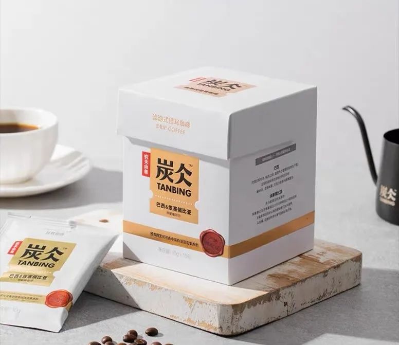 還有炭仌(bing)掛耳咖啡包裝設(shè)計也非常的高大上,以打造“0.01平方米咖啡館”為設(shè)計理念,分別設(shè)有小黑盒、小白盒和小棕盒三款包裝,類似護膚品的取名以引起消費者的新鮮感。