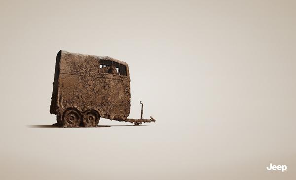 初看來不知所云,這是Jeep的廣告?Jeep還產拖車了?還是這樣一個不修邊幅渾身泥漿的模樣?