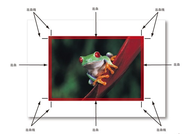 出血線是用來界定圖片或色地的哪些部分需要被裁切掉的線。(出血線以外的部分會在印刷品裝訂前被裁切掉。所以也叫裁切線。)