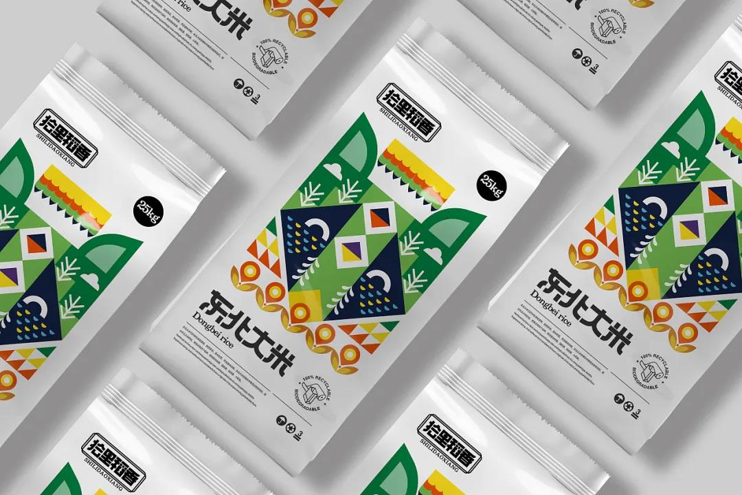 首先品牌根據(jù)產(chǎn)品的不同特性,分為三款風格包裝,整體夸誕而現(xiàn)代的設(shè)計,賦予包裝新的生命力。極簡白的外袋包裝下,封面采用了幾何圖形拼貼的形式,并以此抽象化為動物頭像,突出了大米生長地的代表性元素。